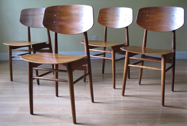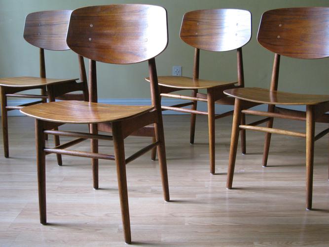 The shell seats and backs are laminated teak, show age appropriate wear, newly cleaned and oiled to like new.