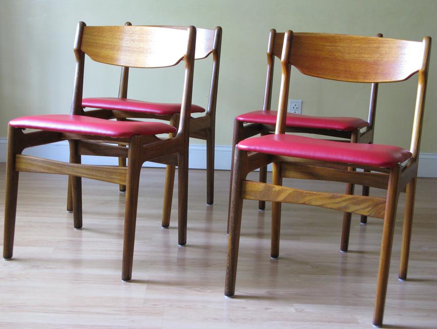 A great set of four afrormosia wood dining chairs manufactured by Findahls Møbelfabrik.