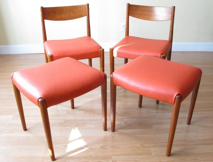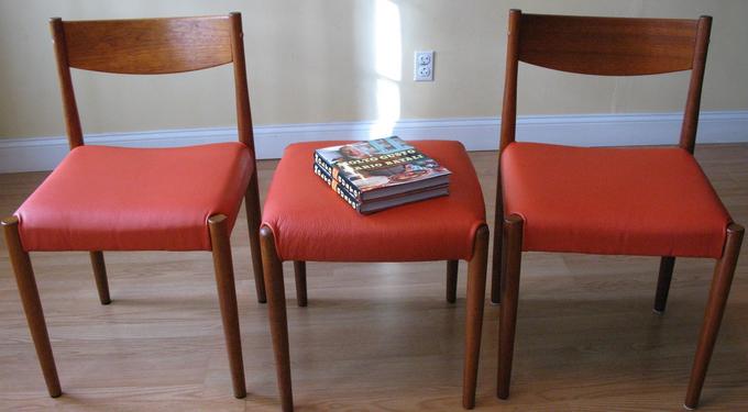 We also reupholstered some with new webbing, new high density foam and new full grain cowhide leather in orange.