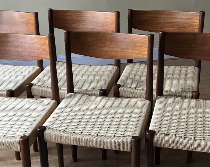 The amount of hours related to removing the original Danish Paper Cord, cleaning the frames, restoring the wood, and reweaving the seats, are enormous.